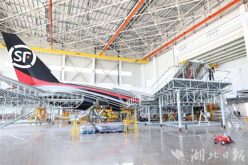 花湖国际机场首座MRO投用,进场维修的首架飞机。湖北日报全媒记者周鹏摄