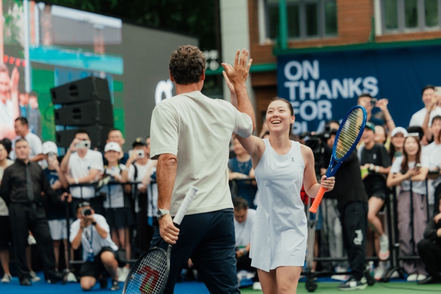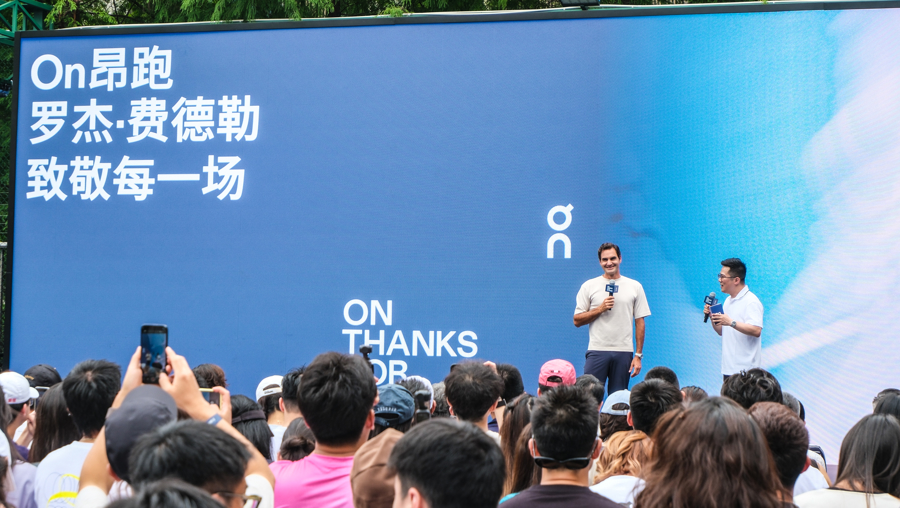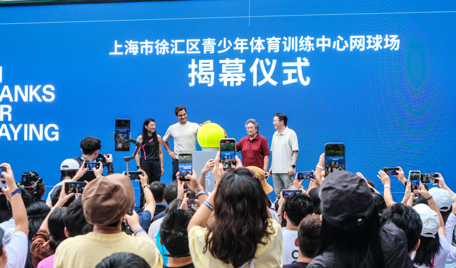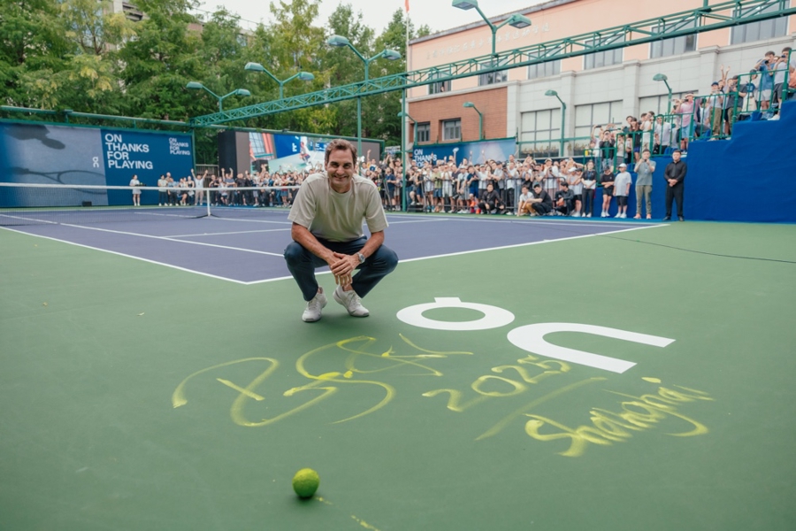 10月8日,第二届“致敬每一场”活动在上海市徐汇区第一少年业余体育学校举行。瑞士网球天王罗杰·费德勒(Roger Federer)亮相现场,与球迷、小球员、On昂跑联合创业者等共同致敬中国网球事业的幕后英雄,并揭幕焕然一新的徐汇区第一少年业余体育学校网球场。